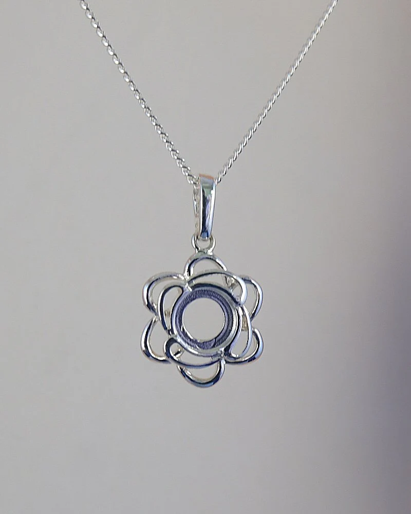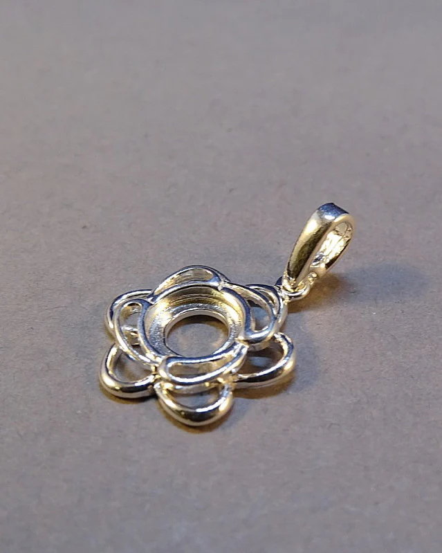 Small but perfectly formed silver pendant setting ready to fit a 6mm cabochon. ALSO AVAILABLE IN GOLD