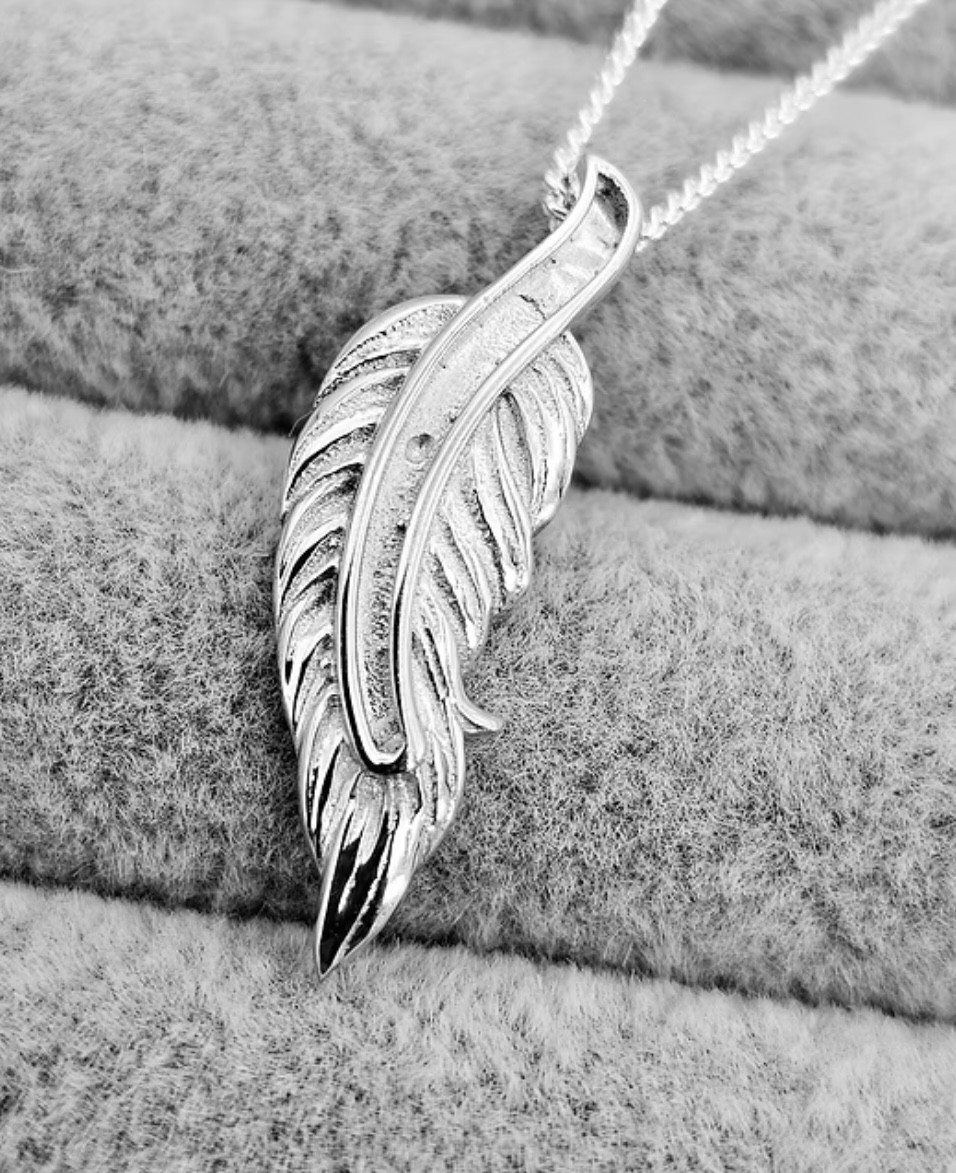Our Silver Feather Pendants are made using fine 925 Silver, are of high quality and are especially designed to hold inclusions. Dimensions of pendant only at the widest points: H 27mm x W 8mm x D 3mm