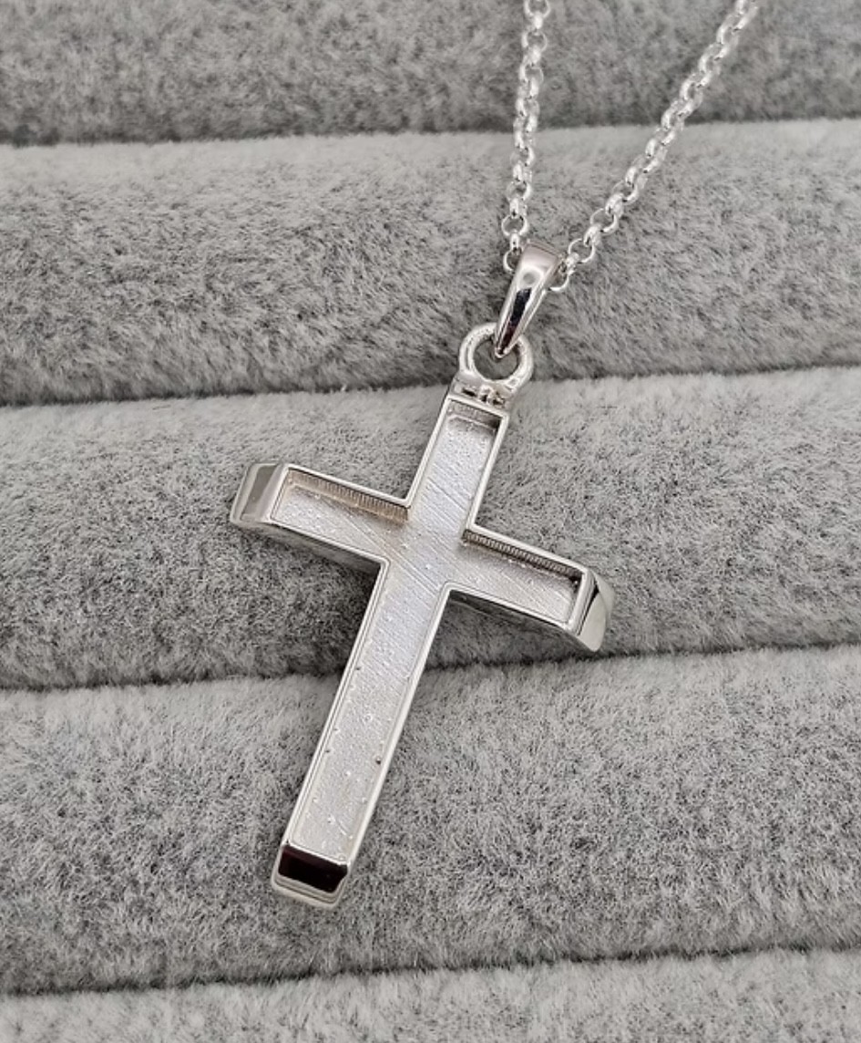 Our Silver cross pendants are made using fine 925 silver, we ensure all of our jewellery pieces are of high quality and are especially designed to hold inclusions. Dimensions of pendant – H 29mm x W21mm x D3mm.